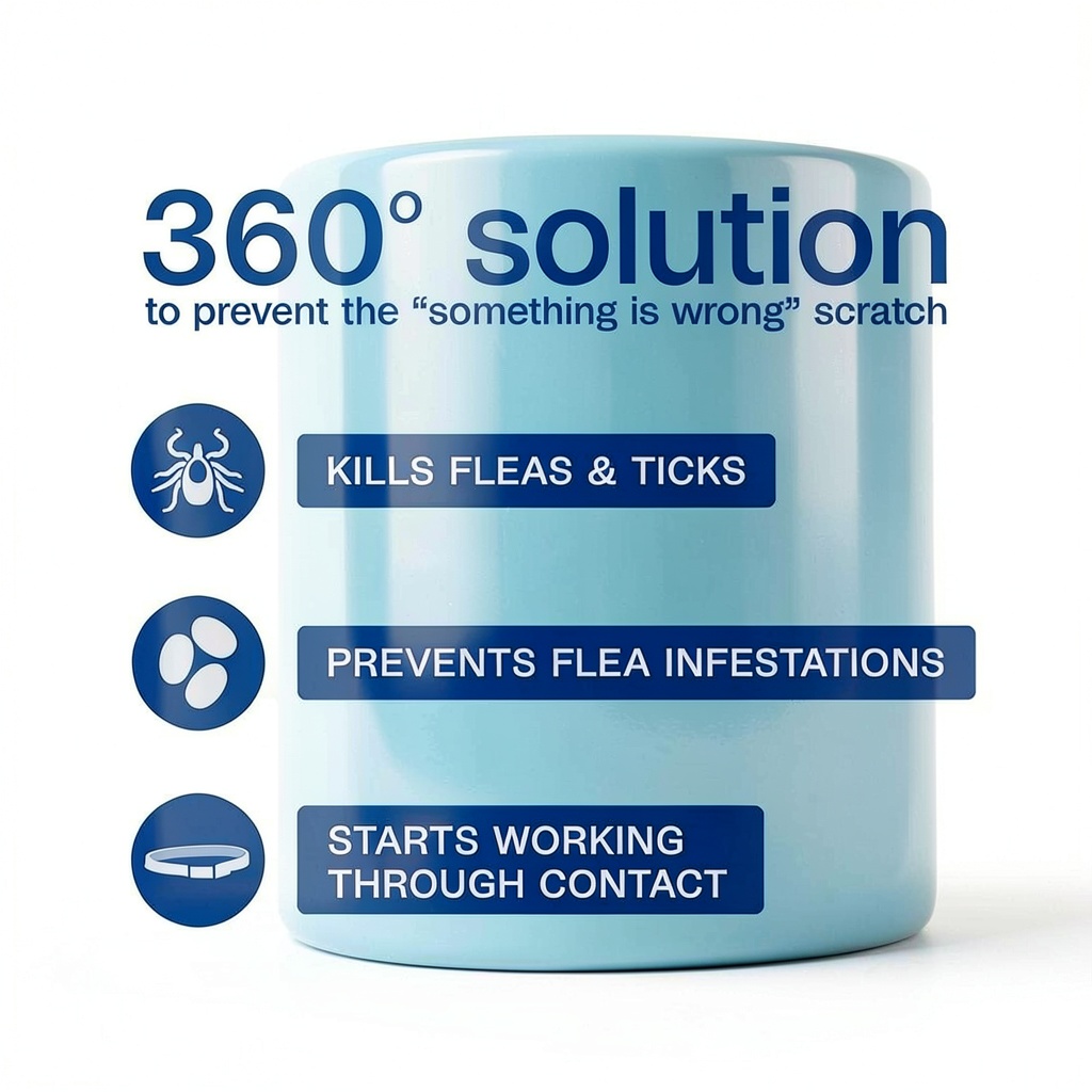 - Kills and repels fleas, ticks, flea eggs, and larvae through contact